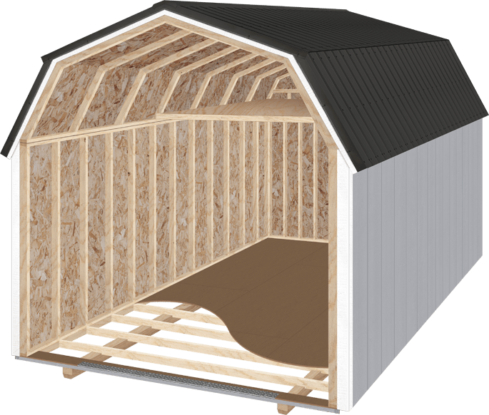 Our 4x6” pressure treaded skids resist rotting and are notched at 12” or 16” on center to ensure consistent floor joist spacing. Recessing and toenailing the joists in the notches lock them in place ensures the shed can be loaded, unloaded, and moved repeatedly without any warping or racking of the floor system.